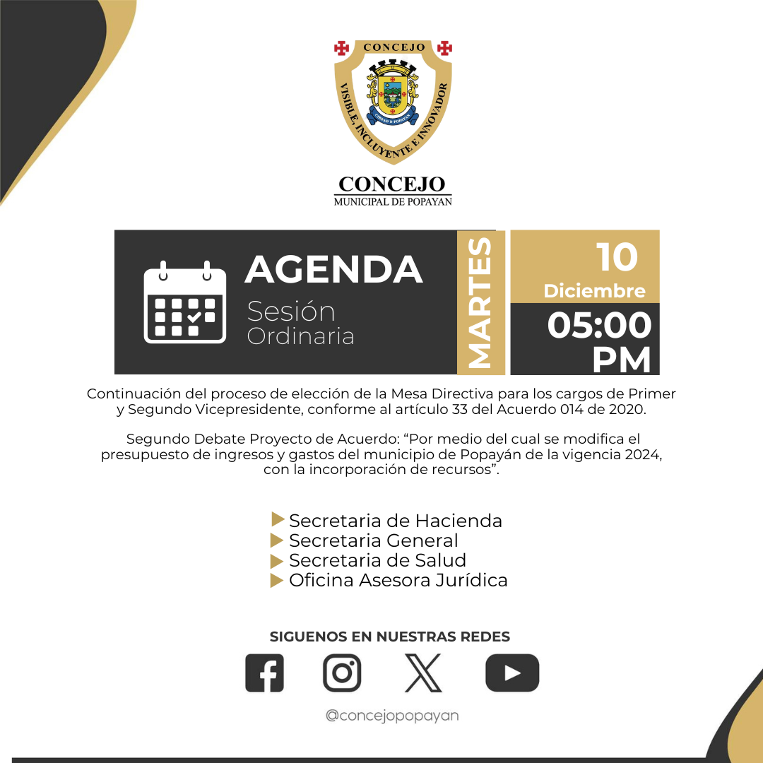 #Agenda | Los invitamos a participar de las Sesiones Ordinarias.