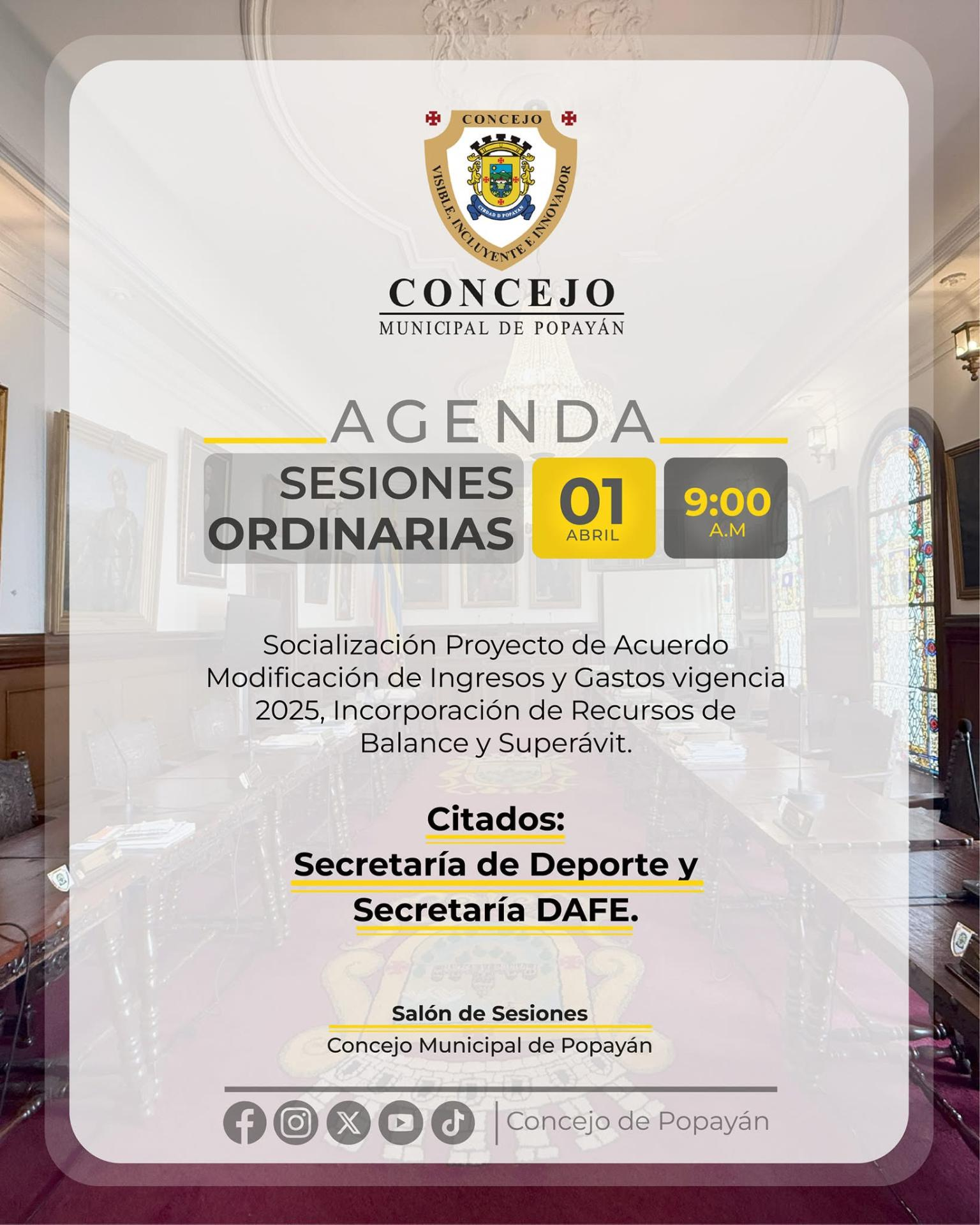 Socialización Proyecto de Acuerdo Modificación de Ingresos y Castos vigencia 2025, Incorporación de Recursos de Balance y Superávit.