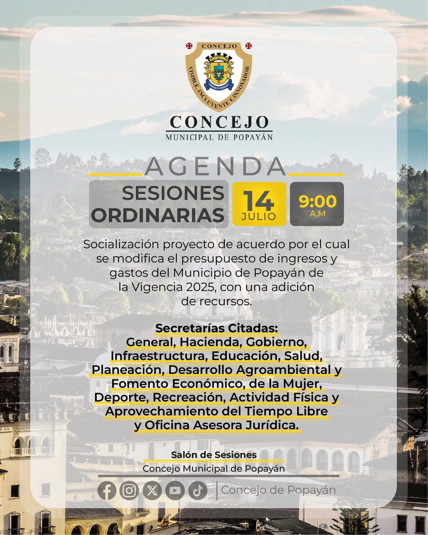 Socialización proyecto de acuerdo por el cual se modifica el presupuesto de ingresos y gastos del Municipio de Popayán de la Vigencia 2025, con una adición de recursos.
