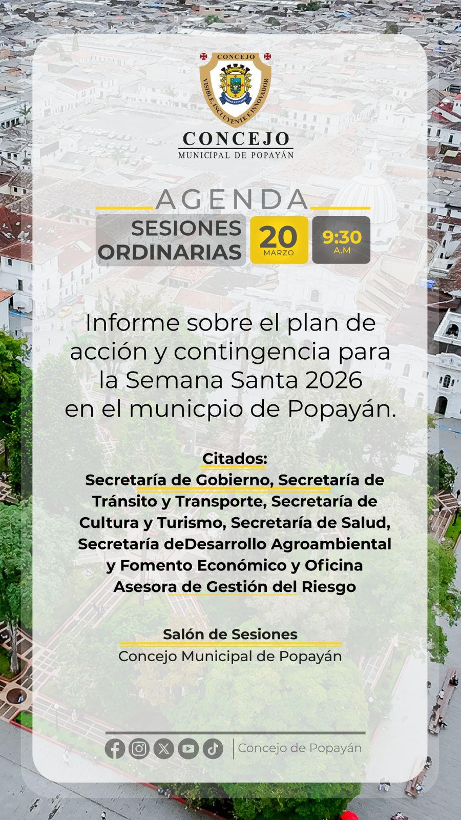Informe sobre el plan de acción y contingencia para la Semana Santa 2026 en el municipio de Popayán.