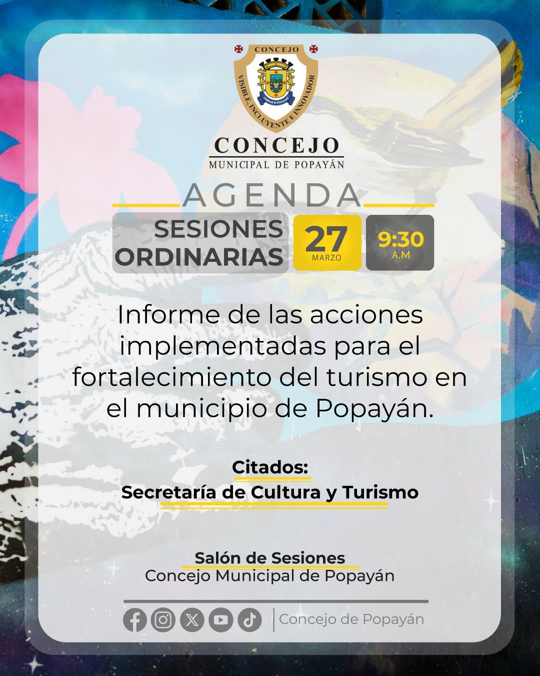 se presentará el informe sobre las acciones implementadas para el fortalecimiento del turismo en Popayán.