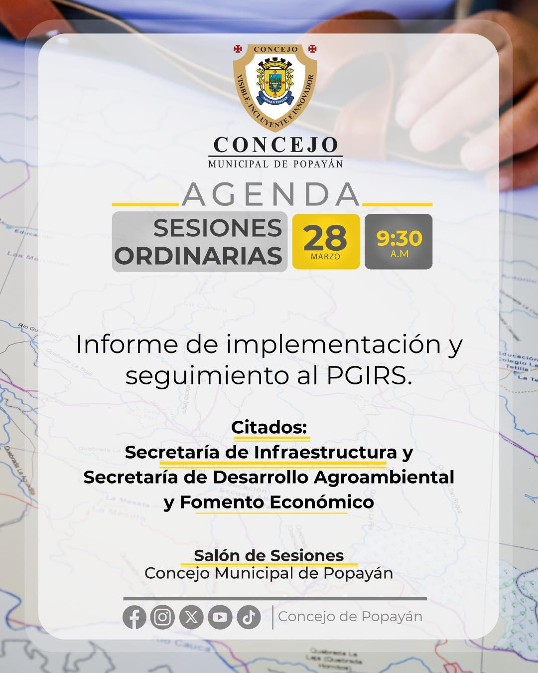 El Concejo Municipal de Popayán realizará seguimiento a la implementación del PGIRS, con citación a las dependencias responsables.