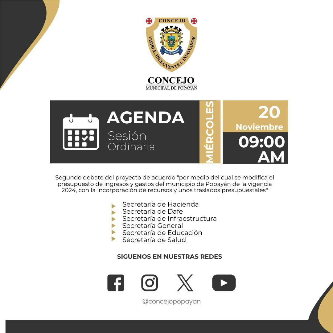 #Agenda | Los invitamos a participar de las Sesiones Ordinarias.